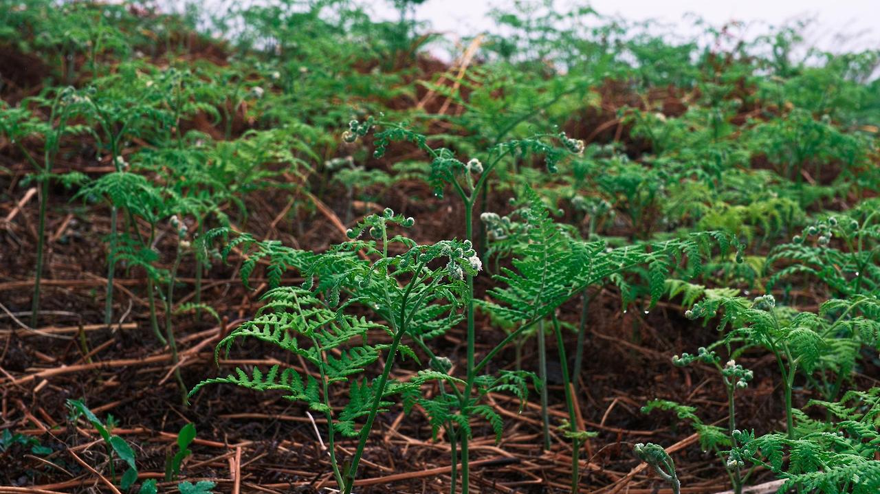 고사리를 뿌리째 뽑지 말고 줄기만 채취해야 합니다.